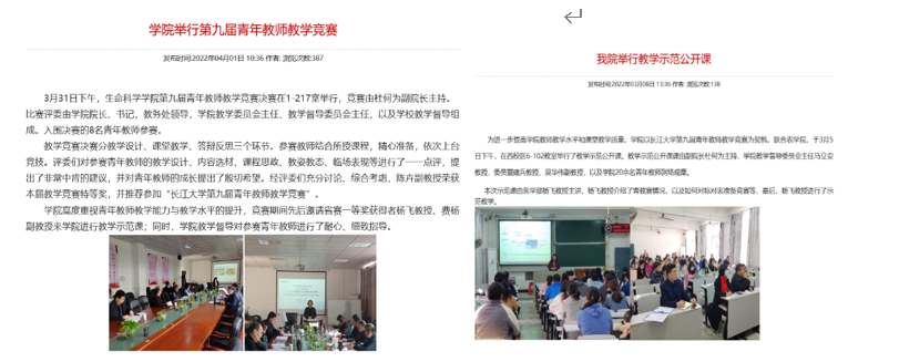 第九届青年教师教学竞赛为契机,先后邀请杨飞教授、费扬副教授来学院进行示范教学;专家示范课与青年教师试讲课同台,让青年教师在对比中找差距、在指导中取真经。四是学院对专家教学示范课,以及青年教师试讲课、比赛课等课堂教学活动进行全程录像,作为学习资料,以鲜活的事实让青年教师获得感悟和体验,发现自身问题与不足,以便针对性地的积极改进。