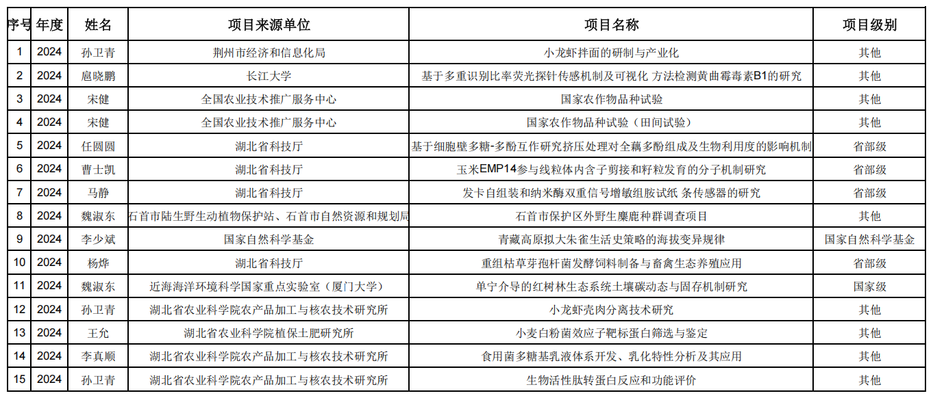 纵向科研项目一览表(2024年)