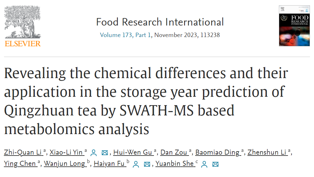 食品科学与工程专业2021级硕士研究生李志泉以第一作者身份在食品领域Top期刊《Food Research International》(IF=8.1,中科院一区)上发表了题为“Revealing the chemical differences and their application in the storage year prediction of Qingzhuan tea by SWATH-MS based metabolomics analysis”的学术论文。硕士生导师尹小丽副教授为论文共同通讯作者,色情网