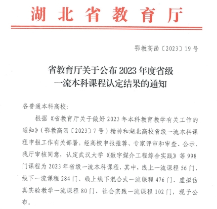 (通讯员:李进)11月29日,湖北省教育厅公布了2023年度省级一流本科课程认定结果(鄂教高函〔2023〕19号),色情网 李进博士主讲的《药理学》课程被认定为省级线上线下混合式一流课程。