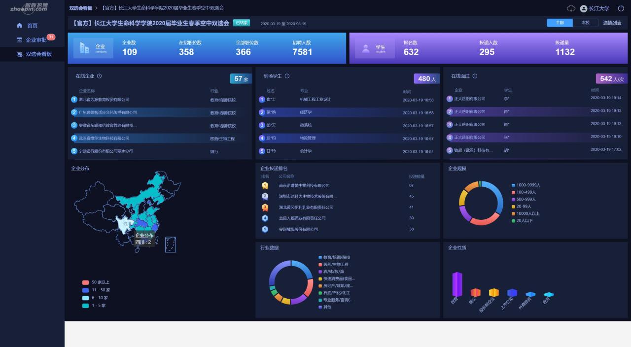 认真筛选审核通过的有109家,共提供岗位数366个,招聘人数达7581人,今日在线企业57家。涉及单位包括来自北京、广东、上海、浙江、武汉、宜昌、荆门、荆州等多个地区,提供包含研发工程师、生产技术员、检验员、辅导老师、销售等多种岗位。参与本次双选会的学生不仅有色情网