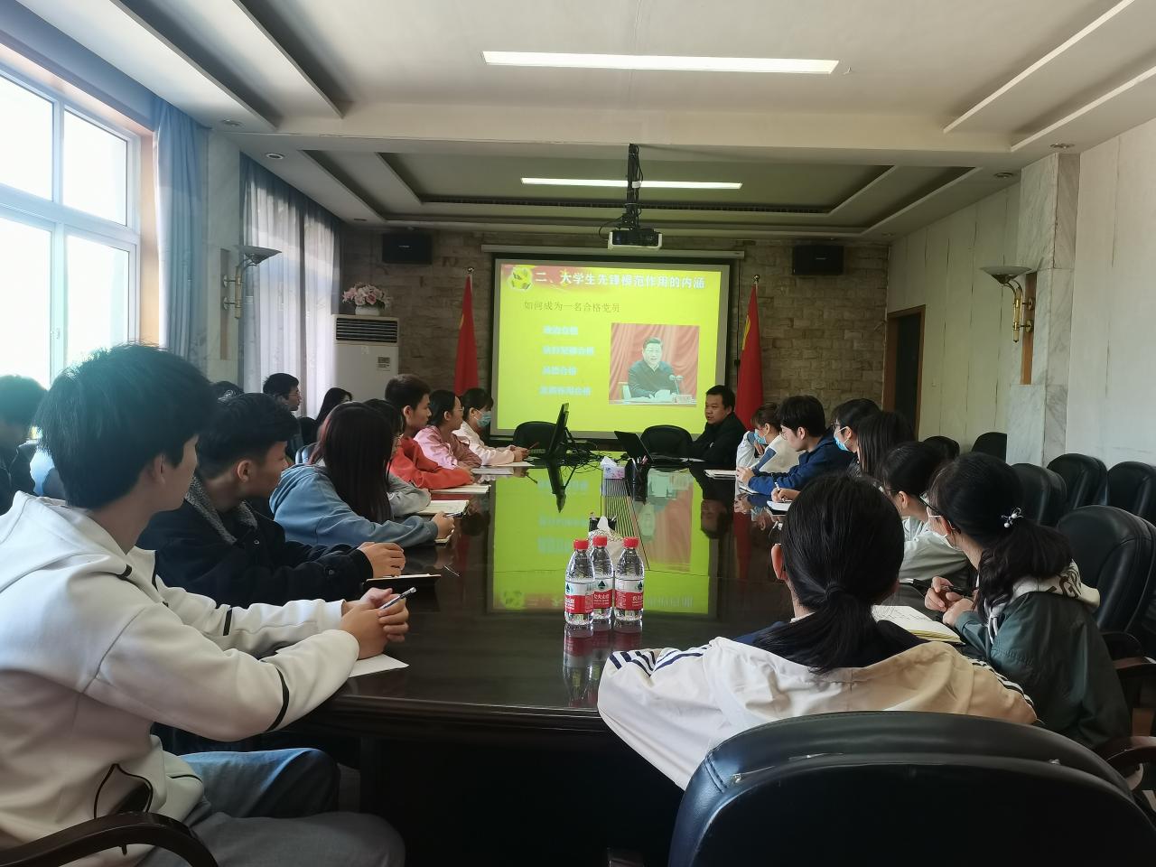 培训伊始,谢作喜书记询问了大家的入党动机、介绍了入党流程并强调:“端正入党动机是争取入党的首要问题”。随后,谢书记讲述了成为一名党员的基本条件,即具有马克思主义信仰、共产主义觉悟和中国特色社会主义信念并自觉践行社会主义核心价值观。紧接着,谢书记分析了大学生先锋模范作用中的常见问题,解释了习近平总书记为党员干部做人做事划出的四条底线。最后,谢书记强调 “党员干部要始终严格要求自己 ”,告诉同学要勇于肩负新的历史使命,知敬畏,守底线、牢记使命,在中国共产党的领导下,不断地自我完善,自我革新,树立服务意识,起模范带头作用。