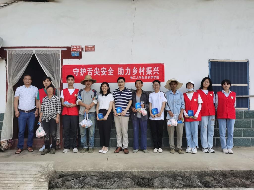 7月26日,当志愿团队到达服务地点后,各成员分工明确,有条不紊地收集调查问卷数据,发放食品安全知识手册,宣传食品安全、食品营养知识以及食品安全相关法律法规。每一位支部成员都热情地投入到志愿活动当中去,调研农村食品安全意识现状、科普食品安全知识,并对活动中村民提出的问题逐一回答。在走访村民的路上,驻村工作队第一书记罗学才队长向村民讲述国家脱贫攻坚取得的成果以及乡村振兴的规划,他对随行支部成员给与深情寄语:“年轻的党员同志,你们生在一个伟大的时代,你们应该投身去国家需要你们的地方!”