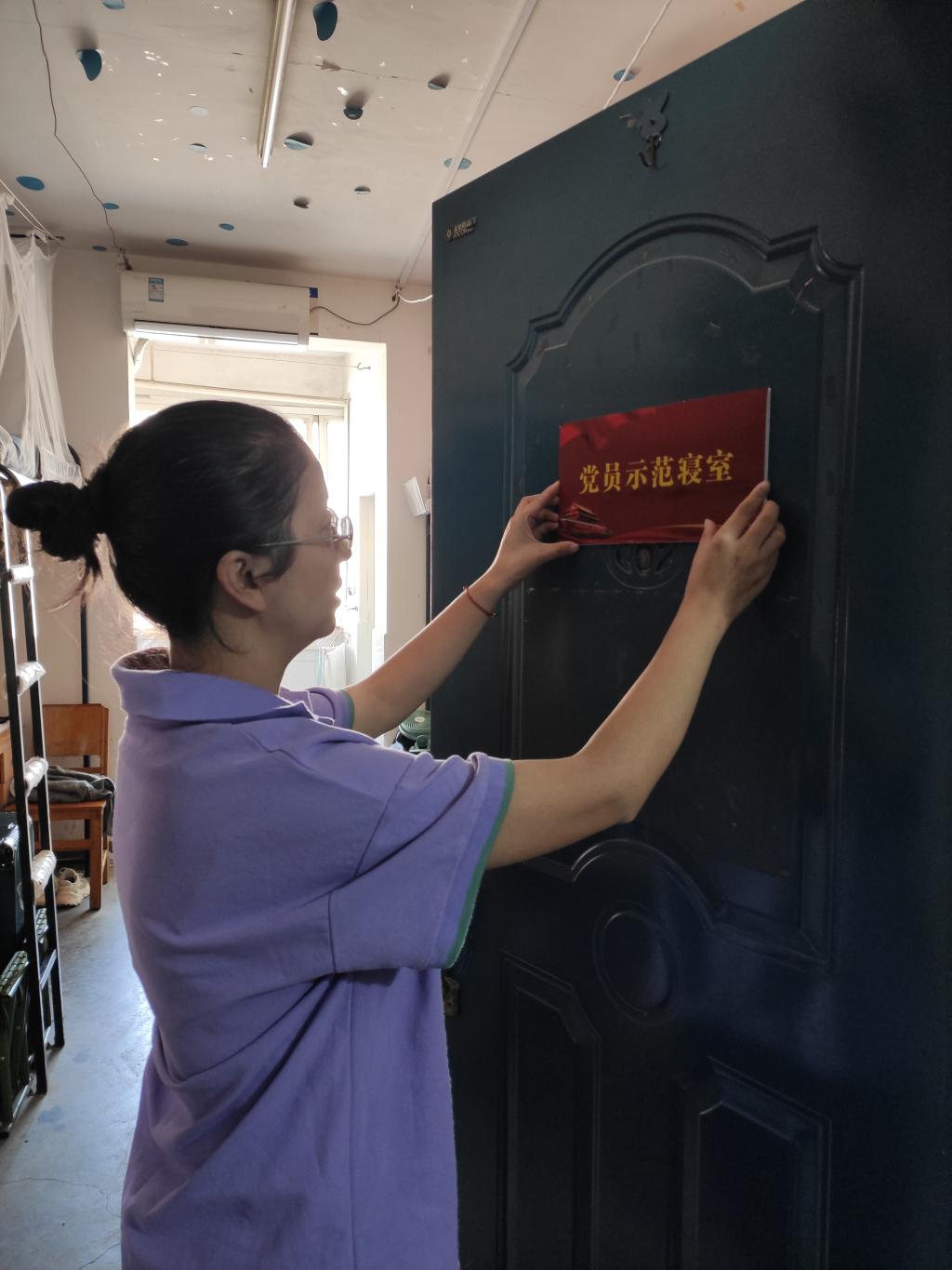寝室是大学生活动的主要阵地之一,每位学生党员都应努力成为所在寝室的模范,带领并组织寝室成员在寝室卫生、遵纪守法、寝室文明、学习风气等方面共同进步,将所在寝室创建成一个模范寝室。本科生第二党支部以学院“寝室文化节”活动为契机,开展了“党员示范寝室”建设,经过整改、考察,明显改善了学院寝室文化建设状况,在实际行动中发挥了党员的先锋模范作用。党支部书记范昆琨在528日当天对河滨公寓2-614寝室进行贴牌表彰,肯定了在古锦慧同志的带领及全体成员共同努力下,寝室创建成了学习氛围好、志愿服务积极、寝室成员精神面貌佳的示范寝室,希望她可以再接再厉,持续发挥模范带头作用。