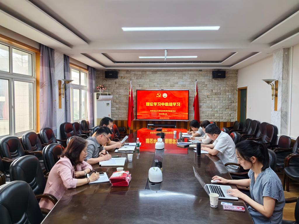 党委理论学习中心组在西校区行政楼323会议室开展四月份政治理论集中学习。中心组成员参加,会议由党委书记谢作喜主持。