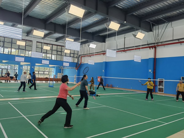 大家放下了繁忙的科研工作,换上了运动装备,走进了羽毛球场,化身活力四射的运动健儿,淋漓尽致地展示着各路球技。