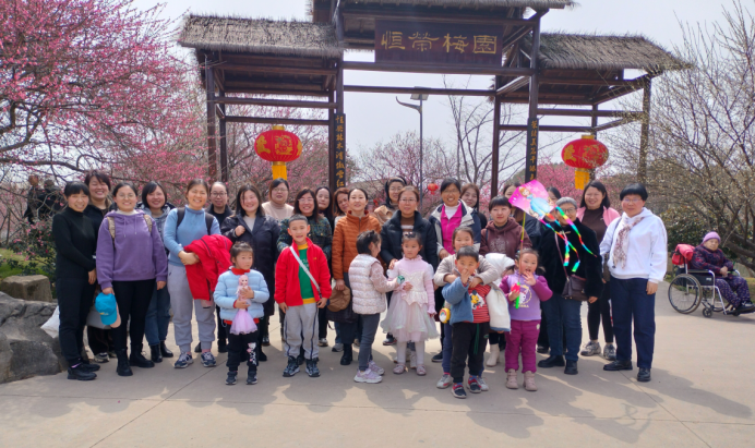 中午时分大家就早早地坐上包车来到梅园,刚一下车节日热闹的氛围就扑面而来,园区人来人往,川流不息,吃的玩的应有尽有。部分女职工还带上了小孩,孩子们是高兴的又蹦又跳,感受着无尽的欢乐和喜悦。在园门口大家拍了一张合照,每个人脸上都笑颜如花。