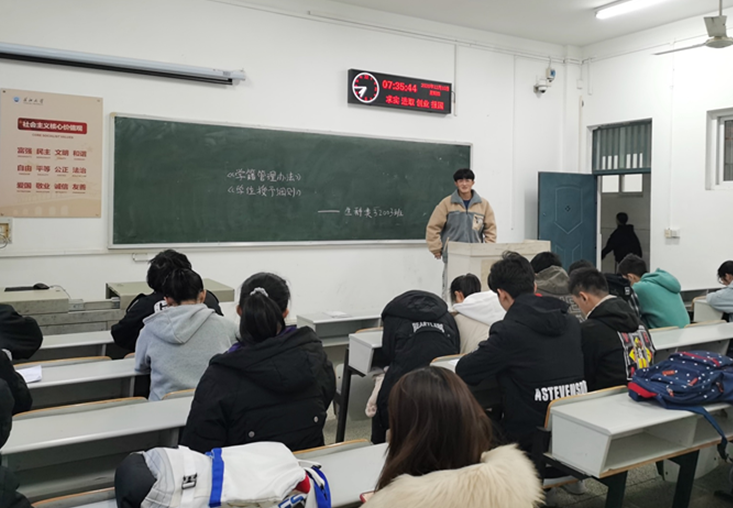 学生管理手册学习后,同学们还围绕重视学籍学习的重要意义展开了讨论。各班主任老师参与会议并对讲述的内容进行总结与强调,让同学们都能对自己的大学生活重新定位,为自己制定清晰地学习目标,做到学习有的放矢,提高在校期间的学习效率。