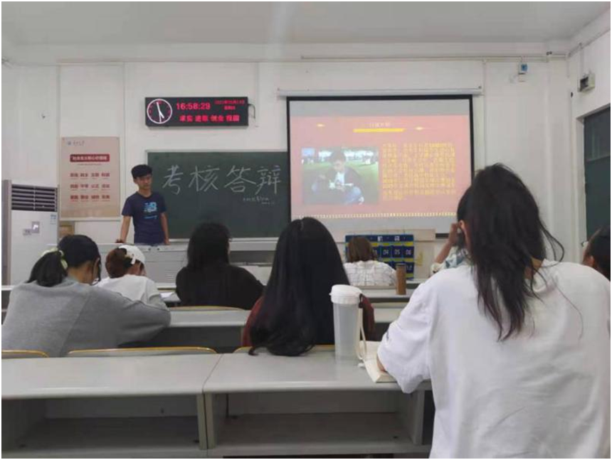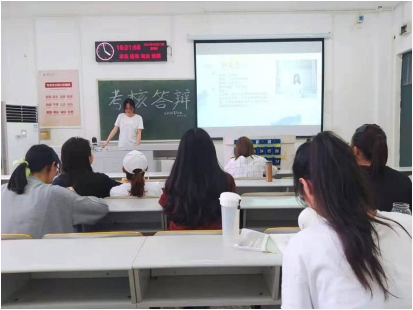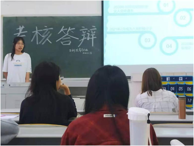 本次答辩主要从思想、学习、能力以及学生服务四个方面展开,在纪检委员肖煜点名后,十四名学员依次上台进行汇报答辩。答辩伊始,学员宗苏豫第一个走上讲台,其出众的平均绩点令人印象深刻,结合在辩论队的经历,她汇报了近期的成长收获。组长李萌欣的答辩主题是“青马学习生活分享之我的三四月”,她在汇报中向大家分享了备考四级的经验和参加“百生讲坛”活动的感受。学员雷智杰本次答辩的主题是“热烈庆祝中国共产党建党100周年--我在青马的成长”。答辩中,他回忆起第一次参加西校区四大院无领导小组讨论比赛时的情景,“其他三个学院的青马学员实力十分厉害,在这次比赛中我收获了需要用清晰的头脑和冷静的心态去思考问题。”