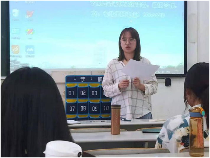 学员答辩结束后,宋咏恬导员针对学员们的答辩情况开展PPT制作培训和答辩指导。在指出大家优缺点的同时,深刻解析了构思制作PPT的要领,对每个部分的重点要素展开讲述。她强调道:“首先,图文比例的把控是制作一份优美的PPT的精髓,不可有长篇大论的文字;其次,答辩过程中需要严格把控时间,注意多和听众交流眼神以及在汇报时加以手势配合,会让答辩更加出彩。”