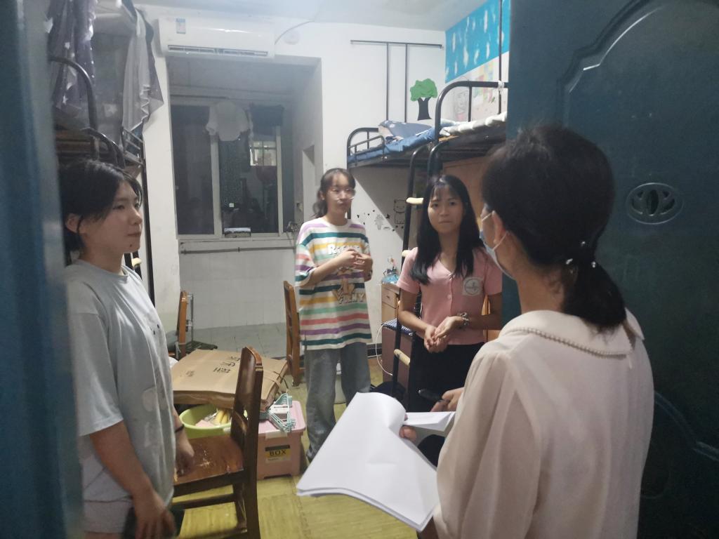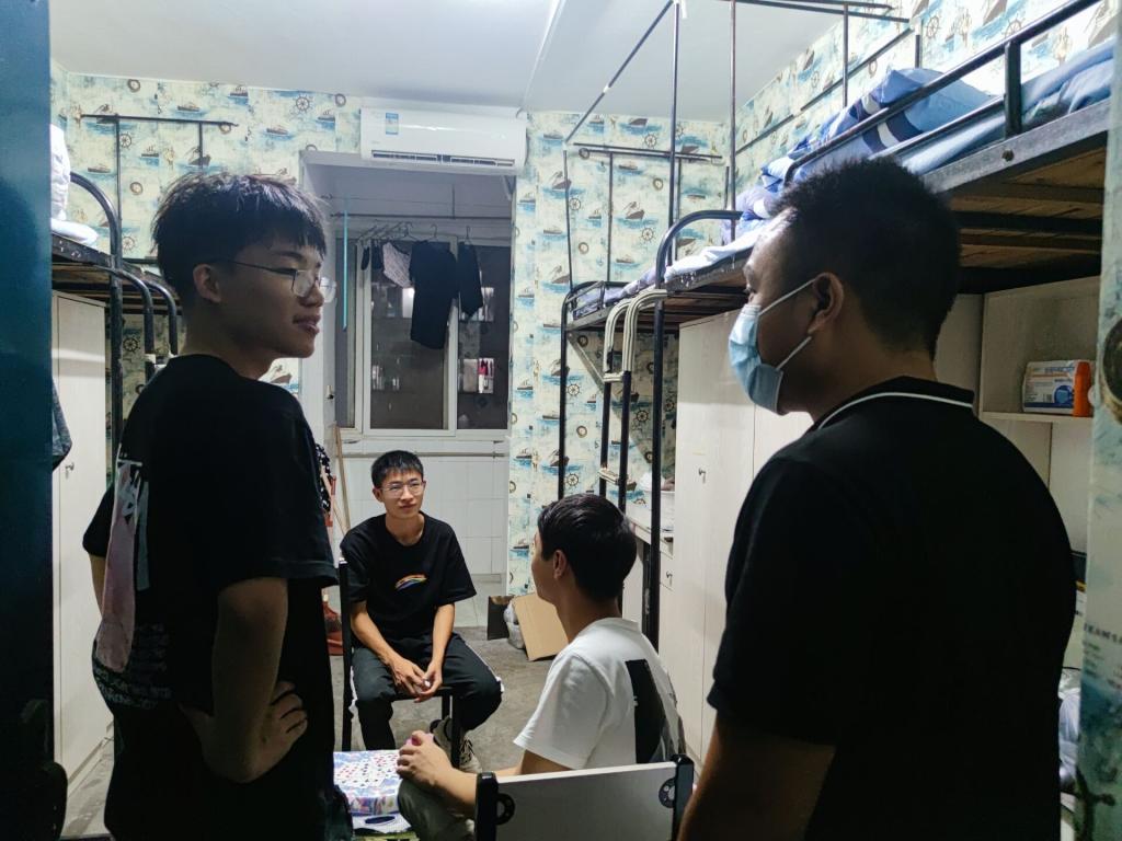 党委书记蔡哲斌教授、副书记汪萍老师、新生辅导员顾志翔老师深入2021级新生寝室,与新生亲切交流,了解新生学习生活适应情况。