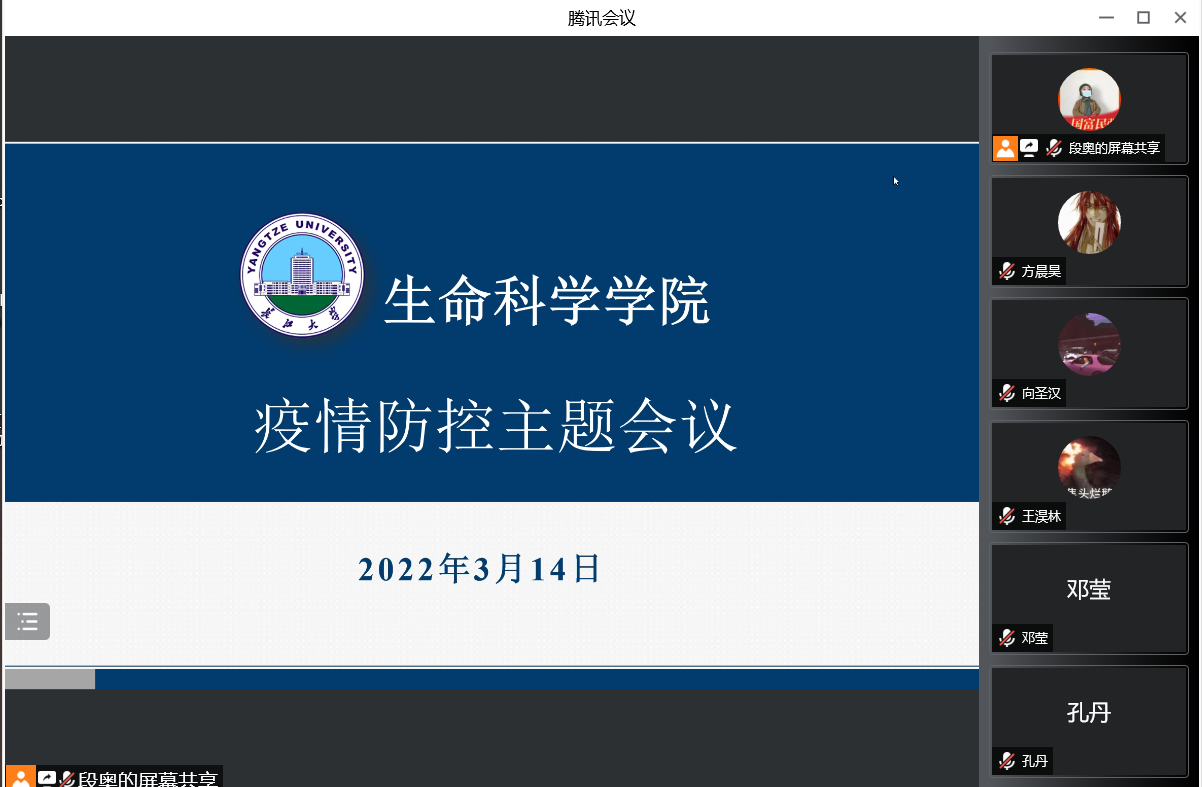 利用腾讯会议顺利召开研究生疫情防控专题会议,此次会议由辅导员顾志翔主持,全体研究生参加。