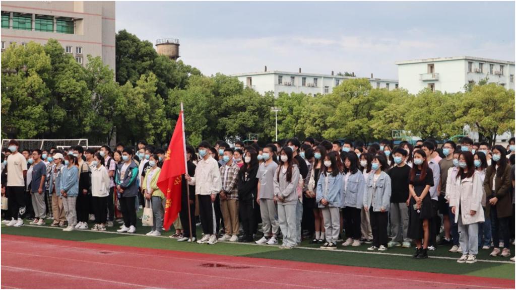 在西校区操场举行升旗仪式,党委书记蔡哲斌教授、院长高梦祥教授、副院长孙卫青教授、杜何为教授、党委副书记汪萍老师、全体辅导员老师以及19、20、21级全体本科生参加本次升旗仪式。