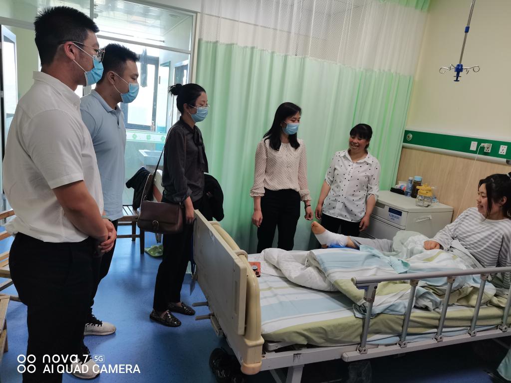 党委副书记汪萍老师、学工办主任范琨琨老师、辅导员顾志翔老师和郭凯老师一同前往荆州市中心医院看望慰问了意外受伤住院的蒋福丽同学,为其送去关爱与温暖。