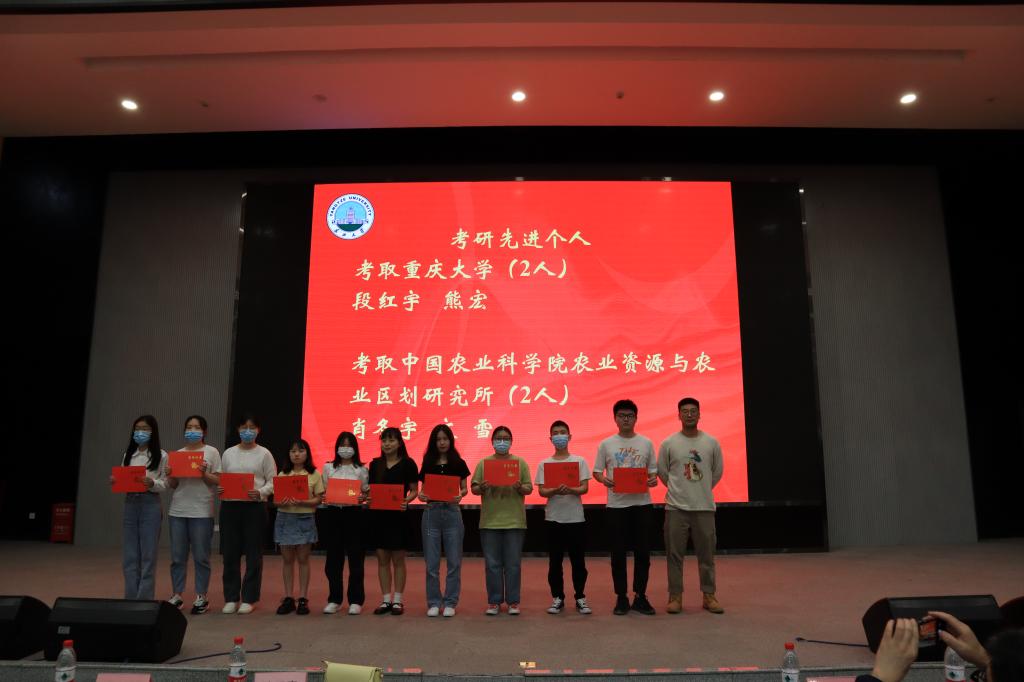 于5月26日下午14: 00在西校区农科大楼1058报告厅举行了2022届考研表彰暨2023届考研动员大会。院长高梦祥教授、副院长孙卫青教授、副院长杜何为教授出席会议,2018级各班班主任老师、考研先进个人以及2019级全体本科生参会。此次会议由党委副书记汪萍主持。