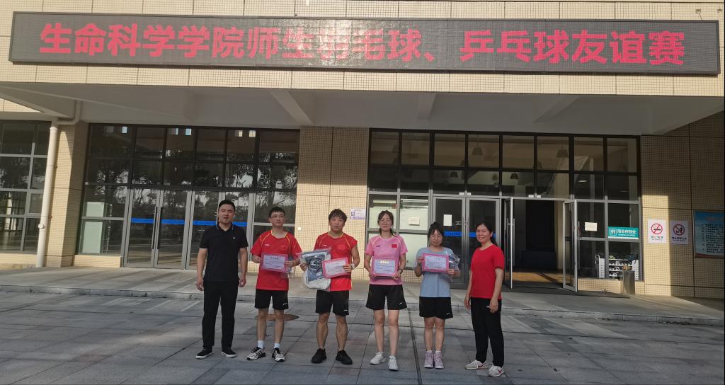 第二届研究生师生乒羽比赛取得圆满成功。康忠翠取得女子乒乓球单打冠军;马丽园取得女子羽毛球单打冠军,张彬取得男子乒乓球单打冠军;向圣汉取得男子羽毛球单打冠军。赛后由研究生教学秘书杨笑彦老师和研究生辅导员顾志翔老师为本次大赛各项组前三名颁奖。