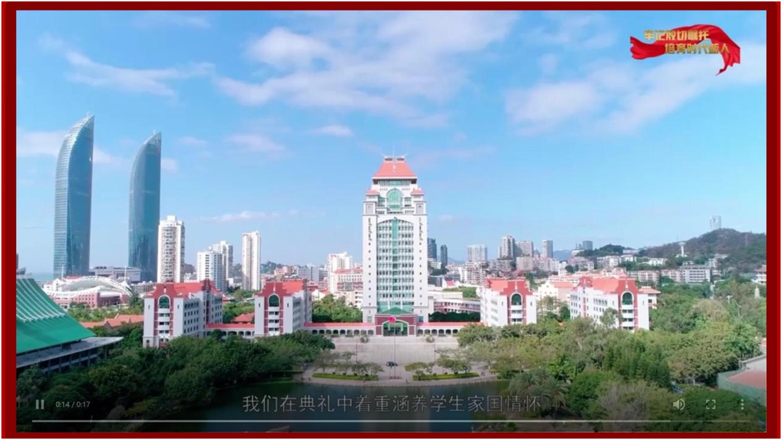 组织师生观看由教育部思想政治工作司指导,新华网、全国高校思政网承办,新华网、人民网、学习强国、微言教育、全国高校思政网、中国大学生在线、易班网联合播出的“牢记殷切嘱托 培育时代新人”高校典礼育人微党课展播第1期。