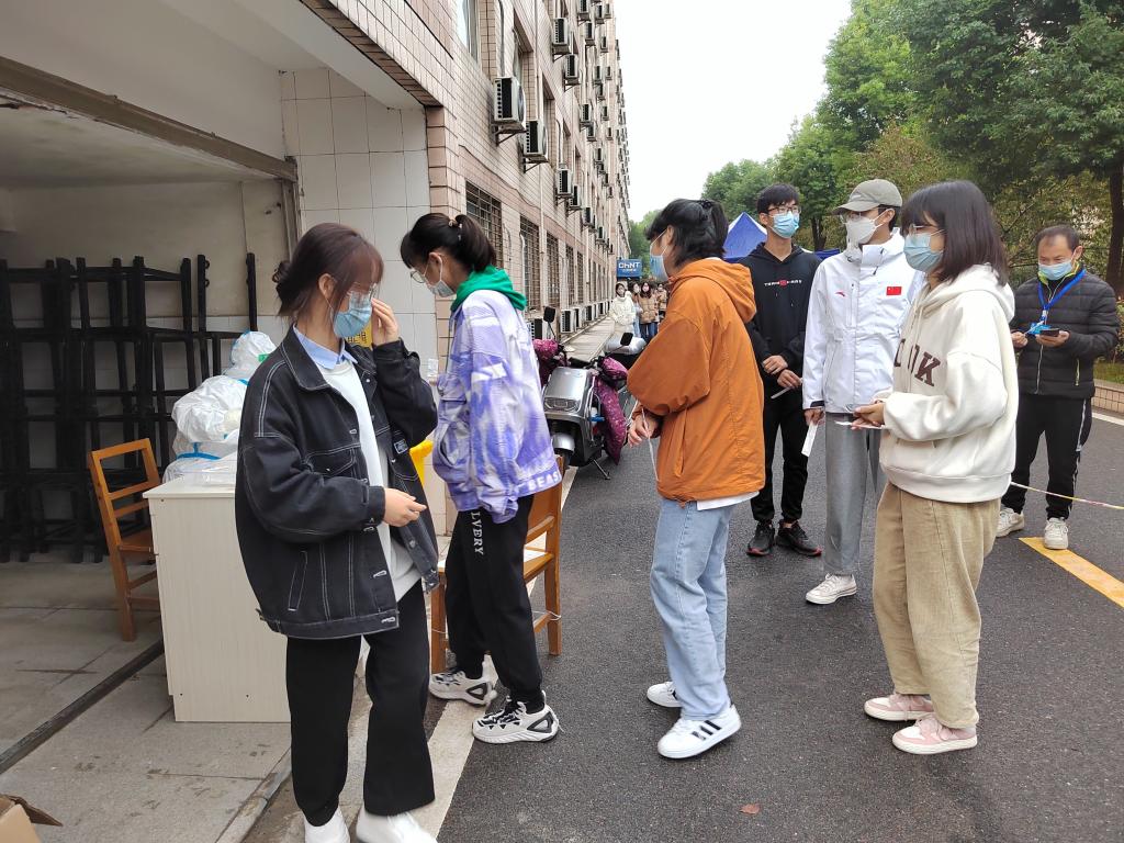 “疫情无情人有情,凝聚力量向前行”。从10月7日至13日,学校组织开展了7轮全员核酸检测工作。在清晨五点半凛冽的秋风中,大家便在宿舍楼下集合早早忙碌起来。老师们时刻关注核酸现场动态,协调各项工作的开展;志愿者们组织同学们有序排队做核酸,配合医护人员细致迅速地扫码采样;楼栋长们在各个楼层逐个通知同学们下楼核酸,保证应检尽检、绝不漏检;与此同时,党员以及入党积极分子们也一直奋战在动员学生、维持秩序、摸底排查、服务学生的第一线。他们以坚定信念构筑起抗疫长城,以实际行动诠释责任担当。