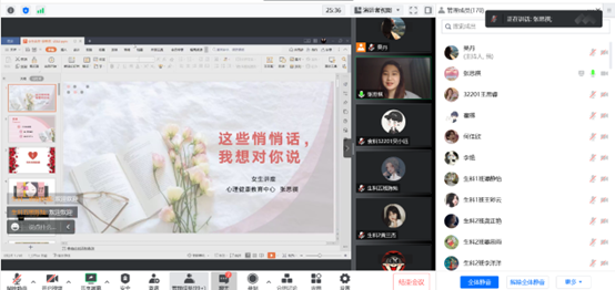 于10月20日晚7点线上开展了以“这些悄悄话,我想对你说”为主题的女生讲座,该讲座由我校心理健康教育中心的张思祺老师主讲,色情网