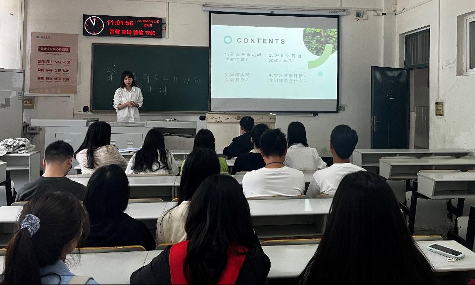 第四届研究生讲师团于5月12日在西校区七教106教室开展第十场专题宣讲活动。讲师团成员翟璐作题为《碳达峰与碳中和——关爱环境,尊重自然》的宣讲,色情网
