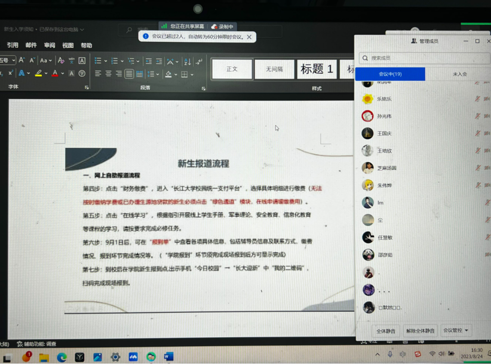 组织召开了以“梦想起航、安全至上”为主题的2023年秋季开学前安全教育主题线上班会。会议包含暑期自然灾害专项资助工作、学生返校安全教育、新生报到等内容。
