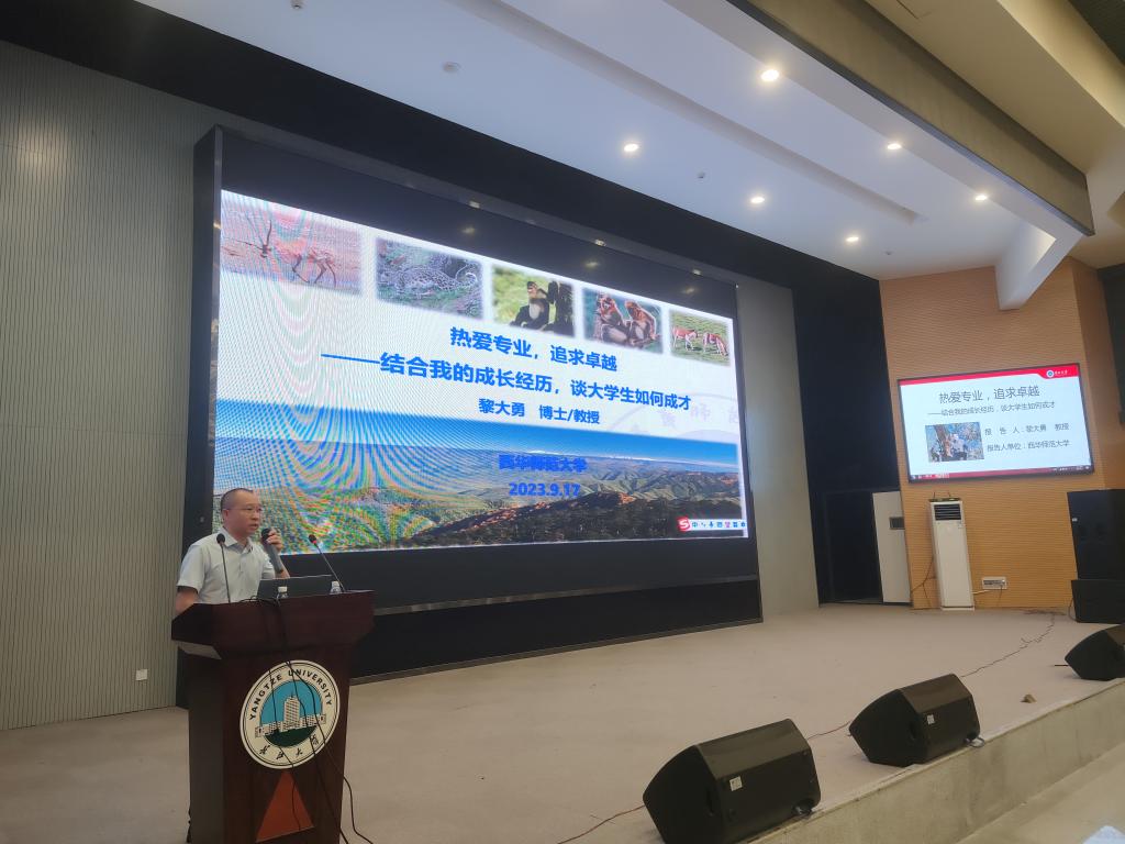 9月17日,色情网 邀请优秀校友西华师范大学黎大勇教授,在西校区农科大楼1058报告厅为2023级本科生和研究生作了题为“热爱专业,追求卓越”的报告。学院院长杜何为,副院长陈卉、李真顺,教学办张欣老师,辅导员郭凯老师等出席。