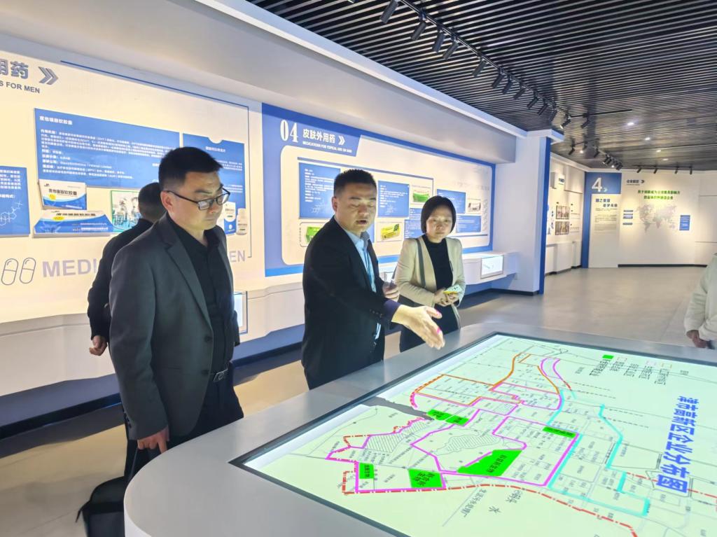在湖南醇健制药科技有限公司的综合展示厅,学院领导一行详细了解了该单位的业务范围、技术实力及市场应用情况。通过参观展示厅内的产品、前沿技术和发展历程,陈卉对醇健制药的技术创新能力表示赞赏,并期待未来在技术研发、人才培养等方面与醇健制药展开深度合作。