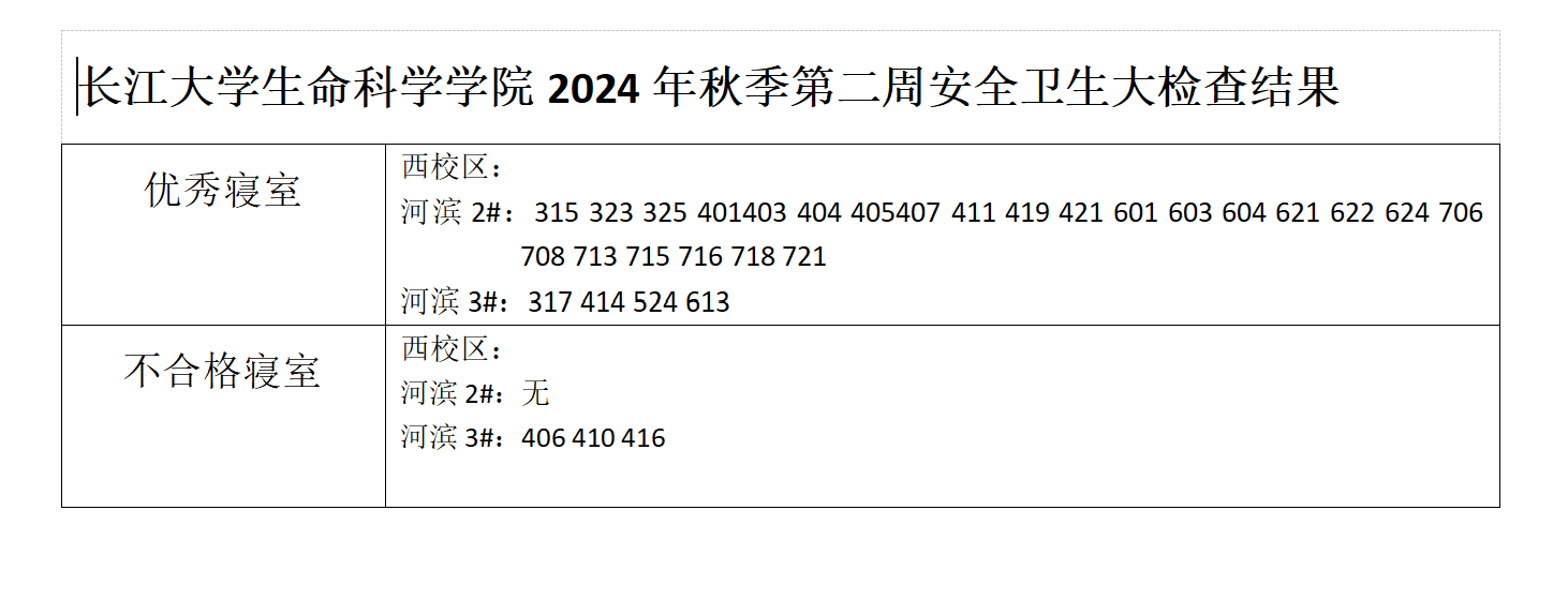 色情网 2024年秋季学期第二周安全卫生大检查结果