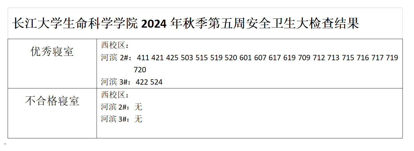 色情网 2024年秋季学期第五周安全卫生大检查结果