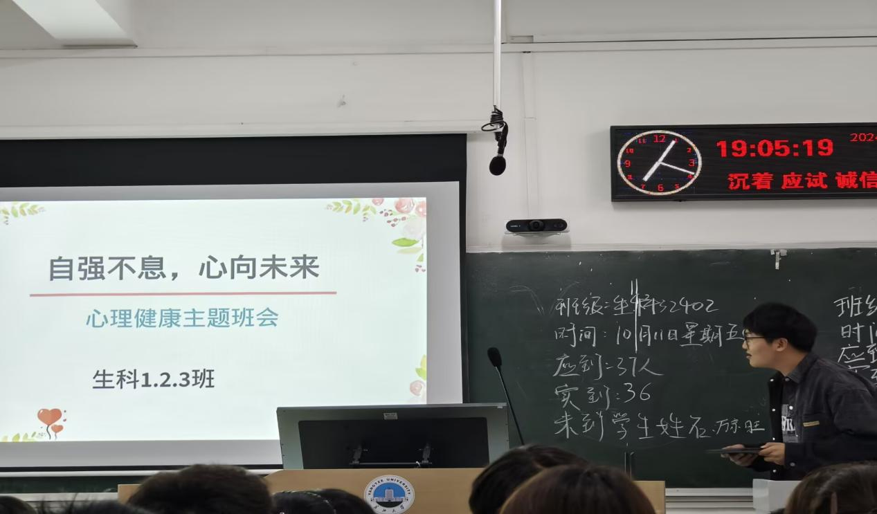 开展2024级新生心理主题班会,此次班会旨在帮助2024级新生尽早融入大学生活,掌握基本的心理健康知识,树立科学的心理健康观念。各班班主任参与其中。