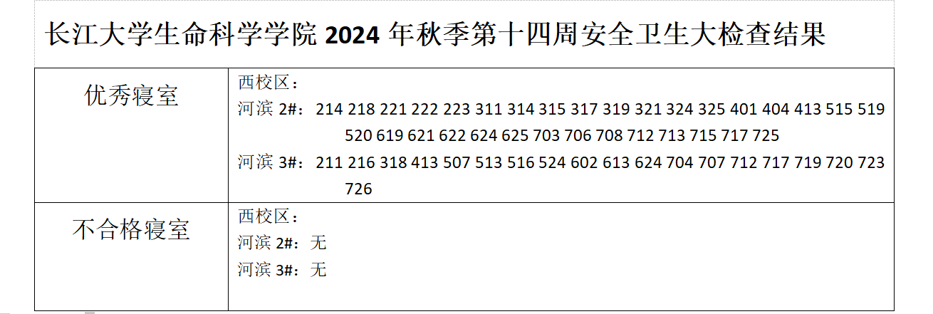 色情网 2024年秋季第十四周安全卫生大检查结果