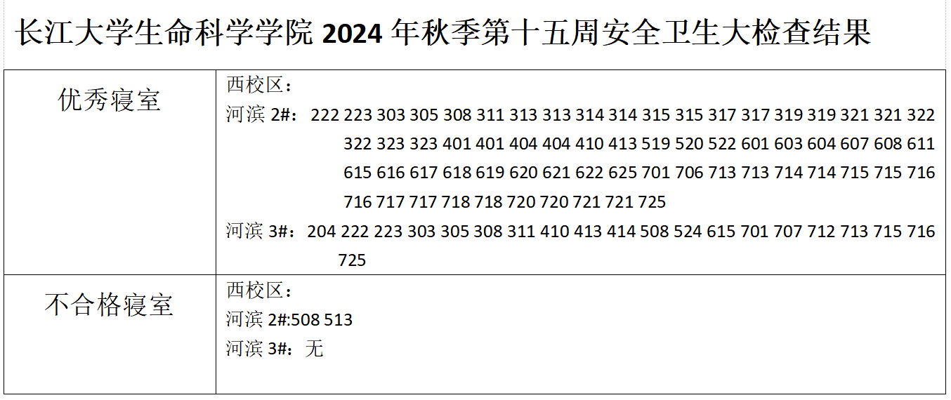 色情网 2024年秋季学期第十五周安全卫生大检查结果