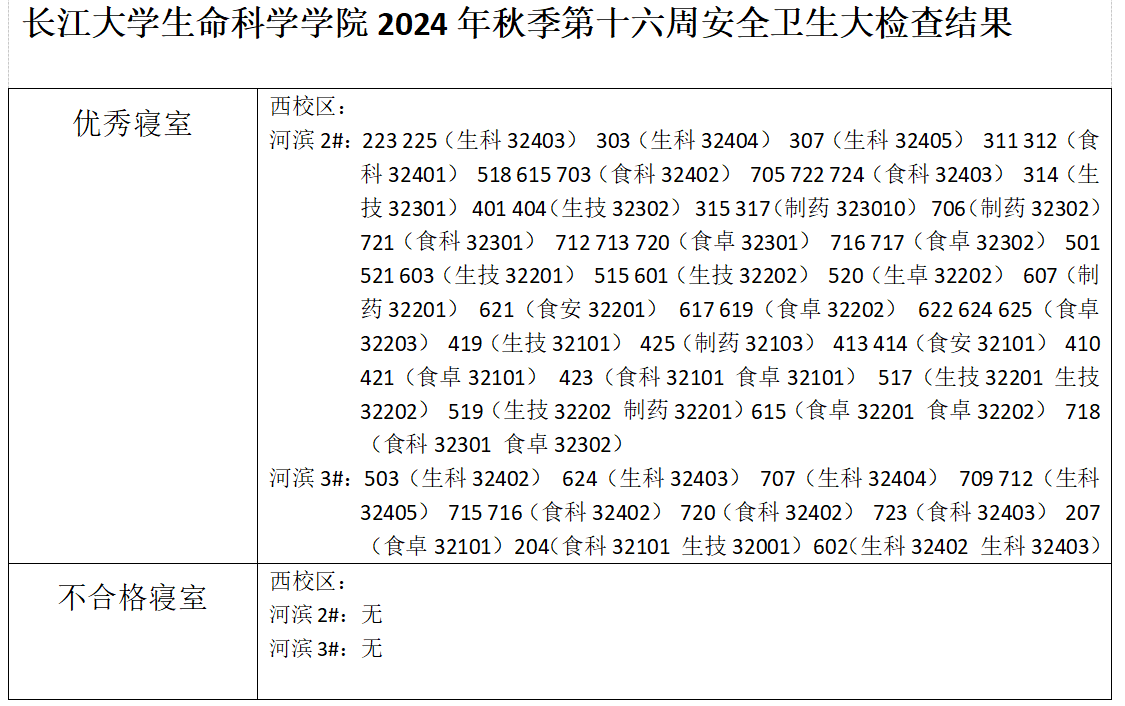 色情网 2024年秋季学期第十六周安全卫生大检查结果