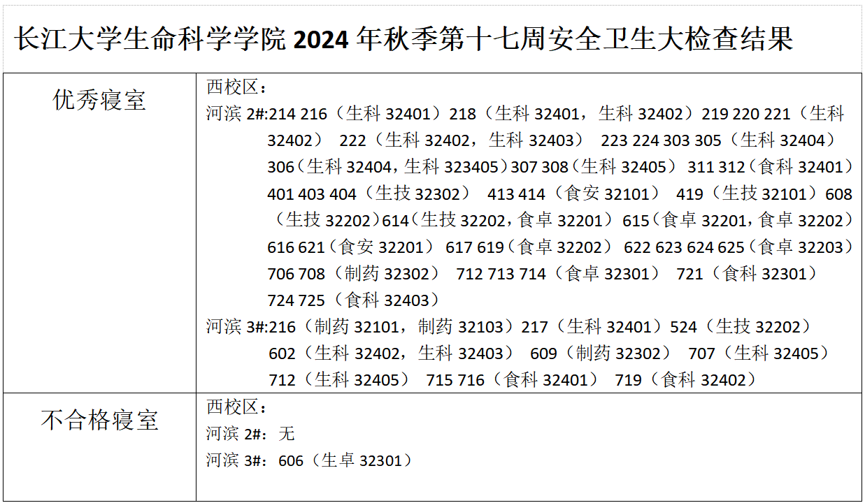 色情网 2024年秋季第十七周安全卫生大检查结果