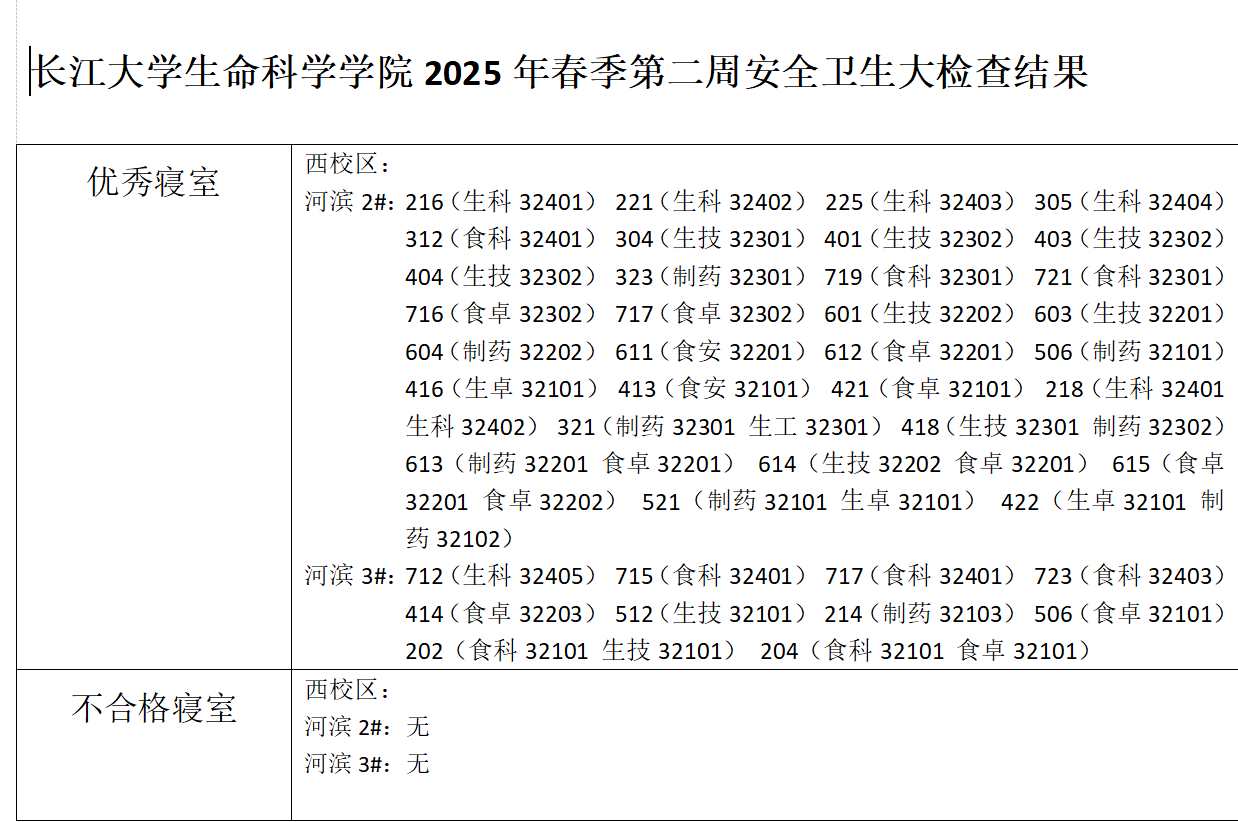 色情网 2025年春季第二周安全卫生大检查结果