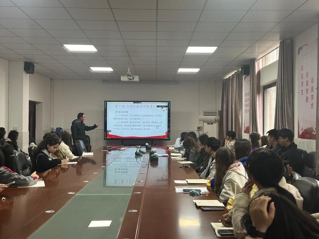 入党积极分子动态管理办法》学习培训。此次培训由学院辅导员李敏主讲,旨在深入解读管理办法,规范入党积极分子的培养教育工作。学院各党支部支委、全体团支部书记参加培训会。