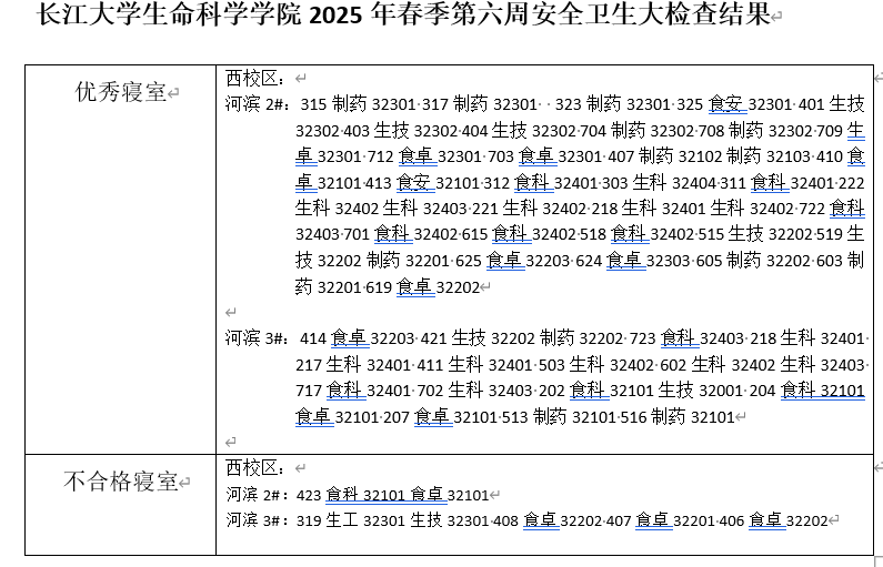 色情网 2025春季学期第六周寝室卫生大检查结果