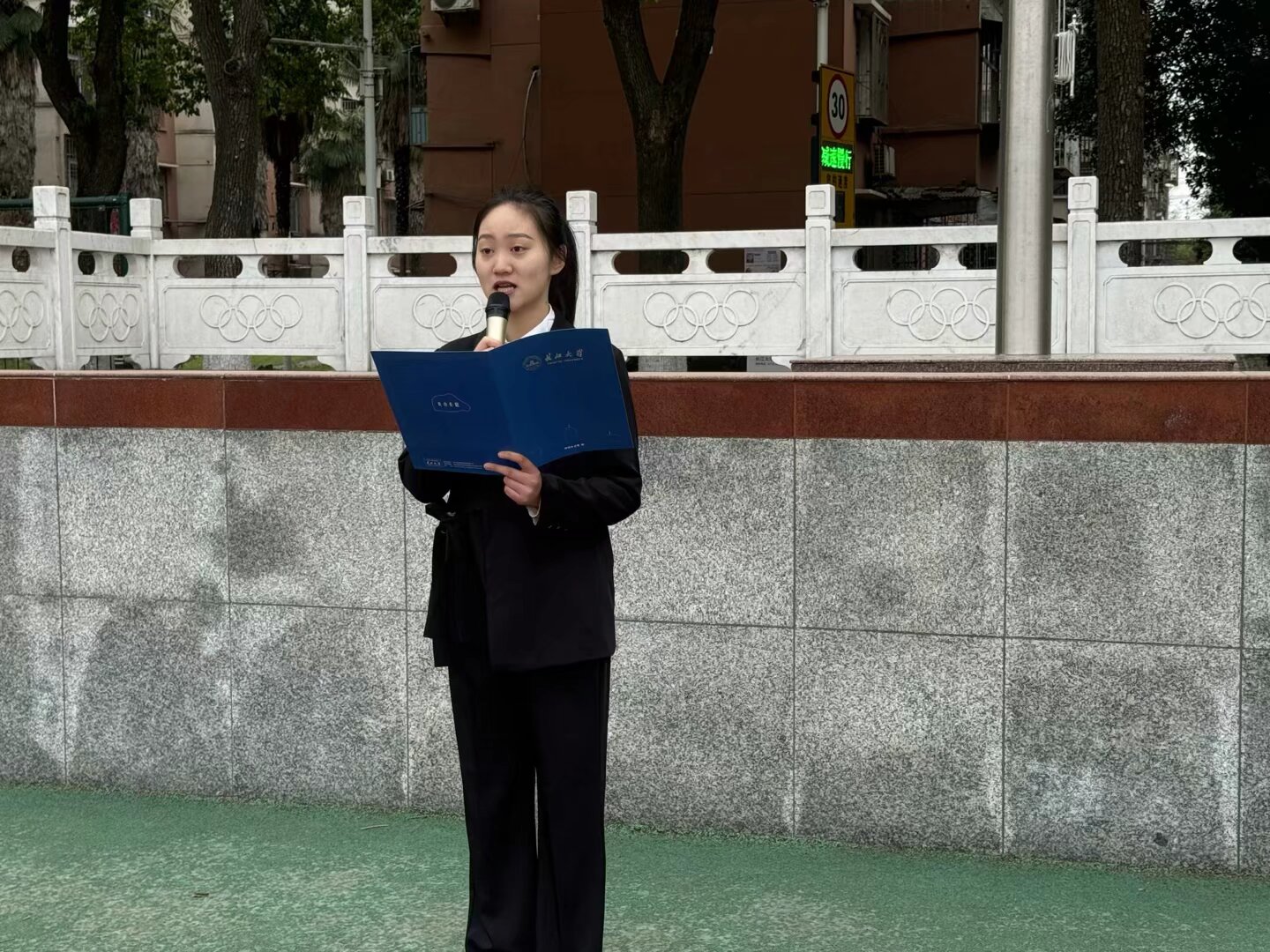 最后,朱翠玲老师以“以青春之光点亮知识星河——做新时代学风建设的追光者与破壁者”为主题在国旗下进行发表讲话。她号召生科学院青年学子要将个人成长融入国家发展大局,做德智体美劳全面发展的时代新人。从“要我学”到“我要学”,以行动打破成长惰性,共同促成优良学风、班风和院风,做中华民族伟大复兴的“强国一代”。