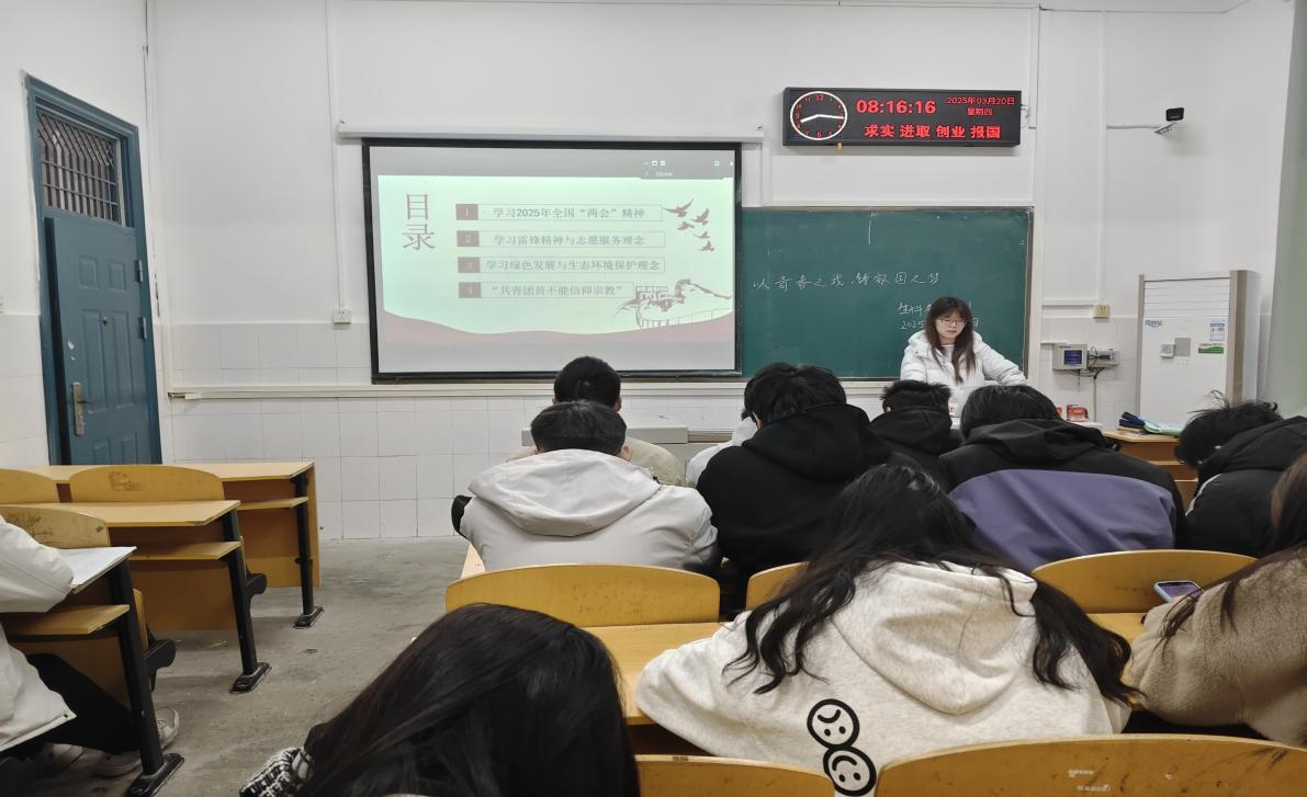 各团支部创新学习载体,通过集中收看、分组研讨等形式深度解析全国两会精神,重点研读《2025年国务院政府工作报告》,结合专业特色开展“科技赋能乡村振兴”等主题研讨,将青春理想融入中国式现代化进程。在实践环节,青年志愿者走进课堂和社区开展生态科普宣讲和卫生清扫,用行动践行“绿水青山就是金山银山”理念;通过“雷锋精神永传承”专题学习,开展无偿献血、盲盒知识竞答、观影沙龙等雷锋月系列活动,让雷锋精神深入人心、赓续传承。