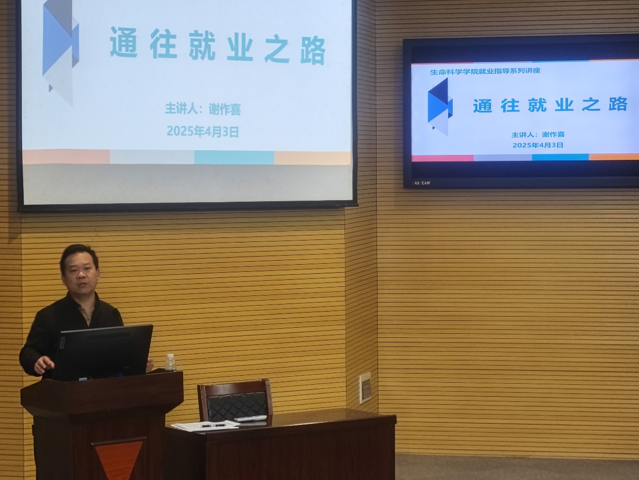 党委书记谢作喜以“通往就业之路”为主题,在农科大楼1056学术报告厅为2026届毕业生作专题讲座。本次活动共有200余名学生参与,现场互动热烈。