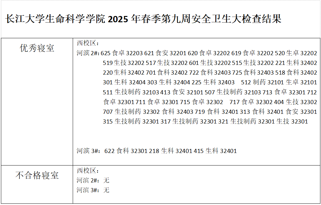 色情网 2025春季学期第九周安全卫生大检查结果