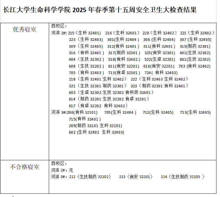 色情网 2025春季学期第十五周安全卫生大检查结果