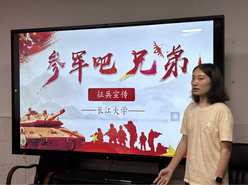 在1教217会议室成功举办征兵宣讲活动。此次宣讲旨在鼓励广大生科学子投身军旅,书写热血青春,辅导员章崇烁老师,征兵宣传负责人及有志于沙场报国的各年级同学共同参与。
