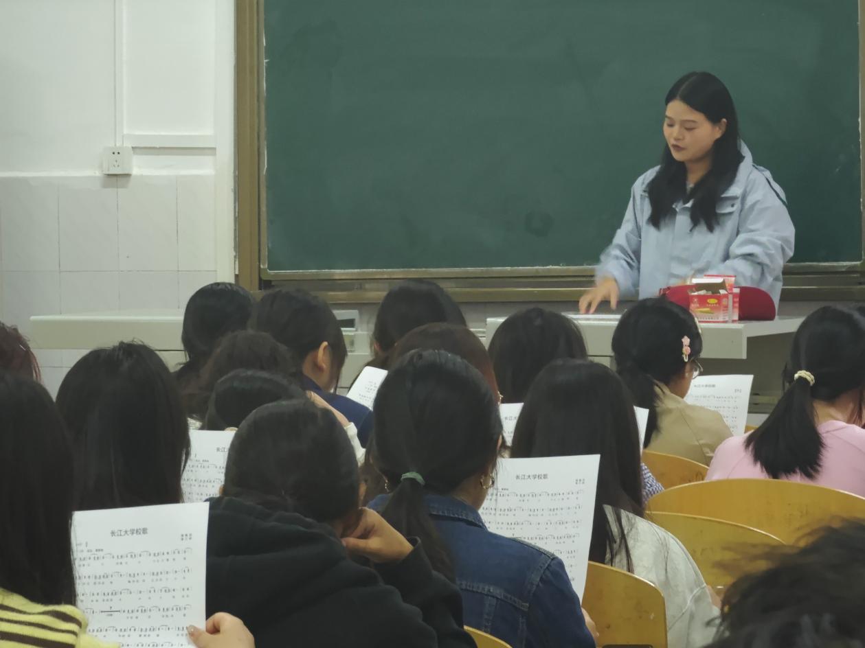 在西区2教108教室,邀请艺术学院声乐方向研究生高莉莎,为2025级研究生开设校歌学习课堂。