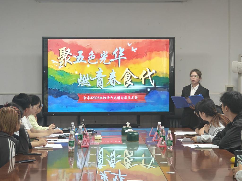 生技32201班以“聚沙成塔,生机勃发”为主题,将班集体生活和专业特色融合在一起,向我们展示了班集体昂扬向上的凝聚力,班级学风建设成果十分亮眼,证实了他们的“学风建设硬实力”。随后,食卓32302班以“聚五色光华,燃青春食代”为主题分享,让五色光华交织成独特的青春成长篇章。在各班讲解结束后,现场评委都会根据各班级答辩内容进行多维度提问点评,既肯定了各班级的突出亮点,也提出了针对性的优化建议。