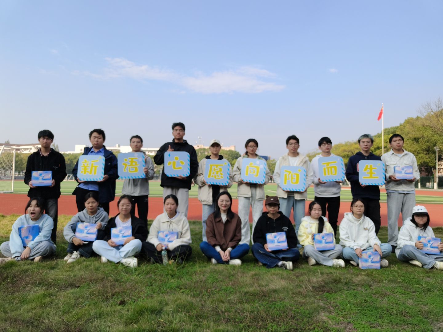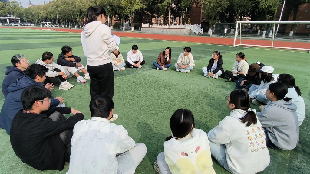 11月15日在西校区田径场开展“谈心+资助解难”草坪座谈会。 朱翠玲老师与学生代表共同参与其中。