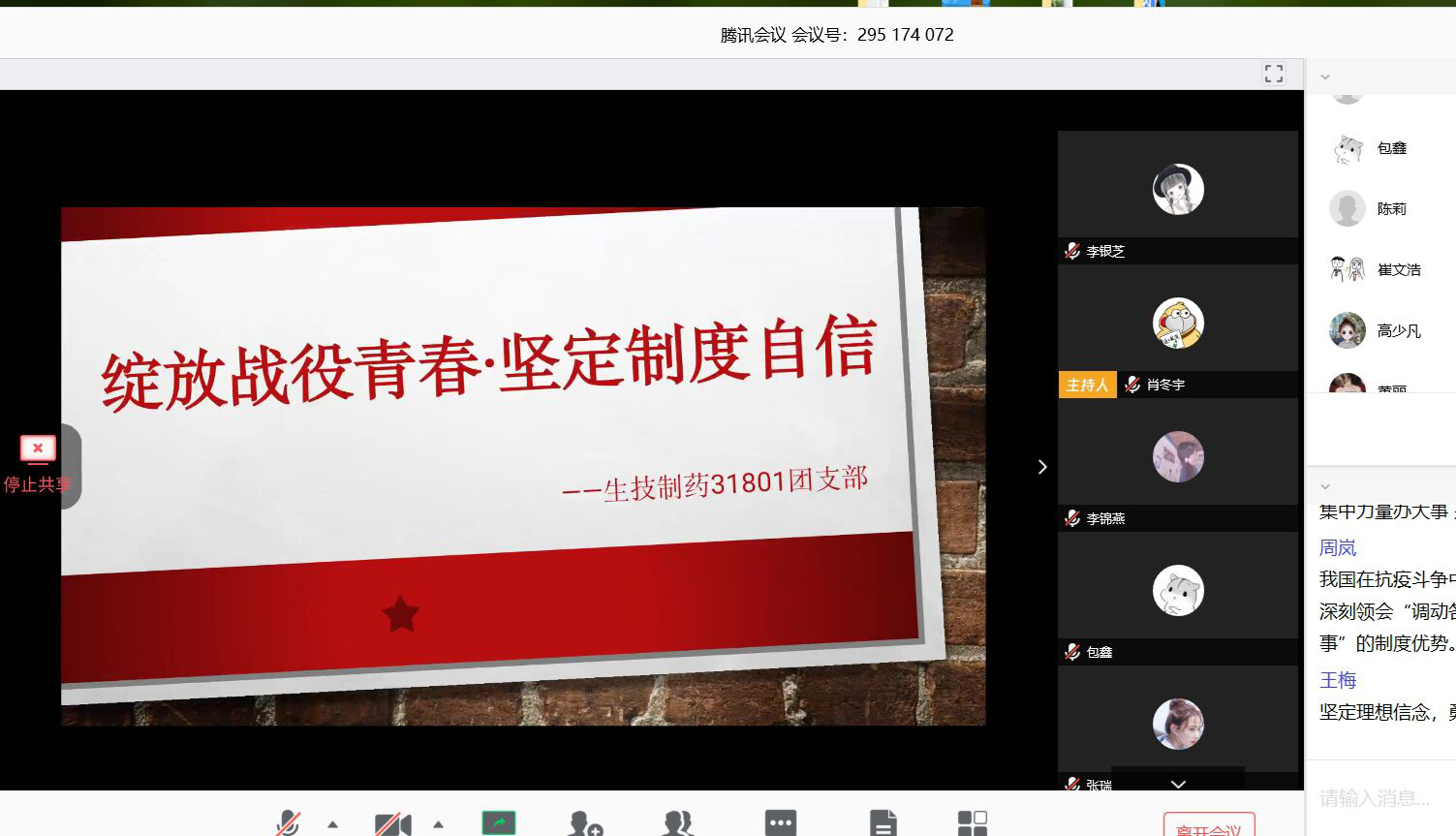 (通讯员 温远东)“绽放战役青春,坚定制度自信。” 5月12日正值全国护士节,下午3时,为深入学习和落实习近平总书记关于疫情防控工作系列重要讲话的指示批示精神,生技制药31801全体成员热烈开展五月“云”班会。