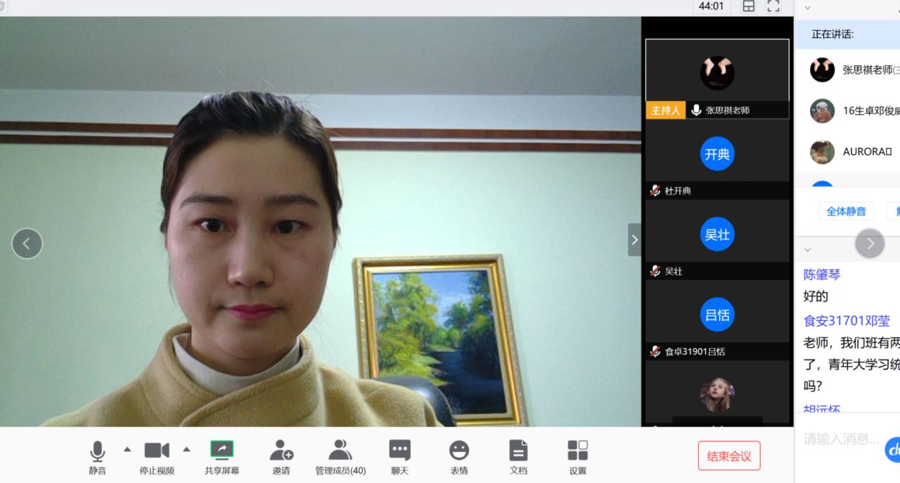 会议伊始,张老师先向各班团副传达了会议的主要精神,同时向大家介绍了此次推优工作的总要求和任务。随后,张老师通过屏幕共享的方式带领同学们一起学习推优入党工作相关文件及材料,详细讲解了此次推优工作的要求及注意事项,说明了推优名额分配的标准及参与推优的条件等,特别对此次推优与以往不同之处做了解释说明。最后,张老师针对同学们提出来的问题做了认真细致的答疑。其中,由于19级的同学大多是下学期分班后新推选出的班干,第一次接触推优工作,张老师特意询问了19级的同学是否清楚此次工作要求,进行了耐心的指导,还叮嘱所有团副如果在工作开展过程中有疑虑的地方可以随时与老师沟通。