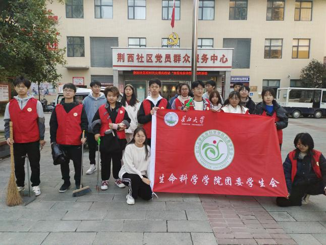 团委学生会于11月14日下午组织19名志愿者开展荆西社区清扫活动,对辖区周边部分街道进行环境清洁。