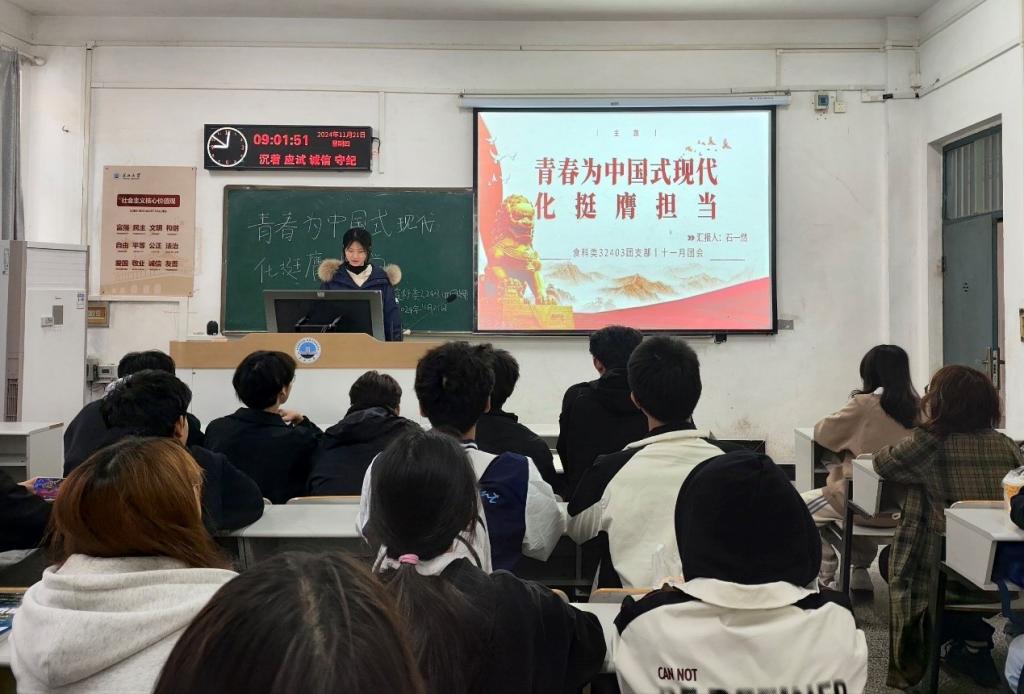 组织开展了以“青春为中国式现代化挺膺担当”为主题的教育实践活动。在学院的号召下,各支部积极响应,陆续召开了十一月主题团会。团会期间,各支部采用多种多样的形式,针对相关内容展开了全面且深入的学习。